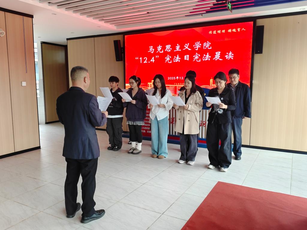 根据第十二个国家宪法日“宪法晨读”活动安排,2025年12月4日,马克思主义学院在湖光校区博文楼三楼会议室前举行“12·4”国家宪法日宪法晨读活动。