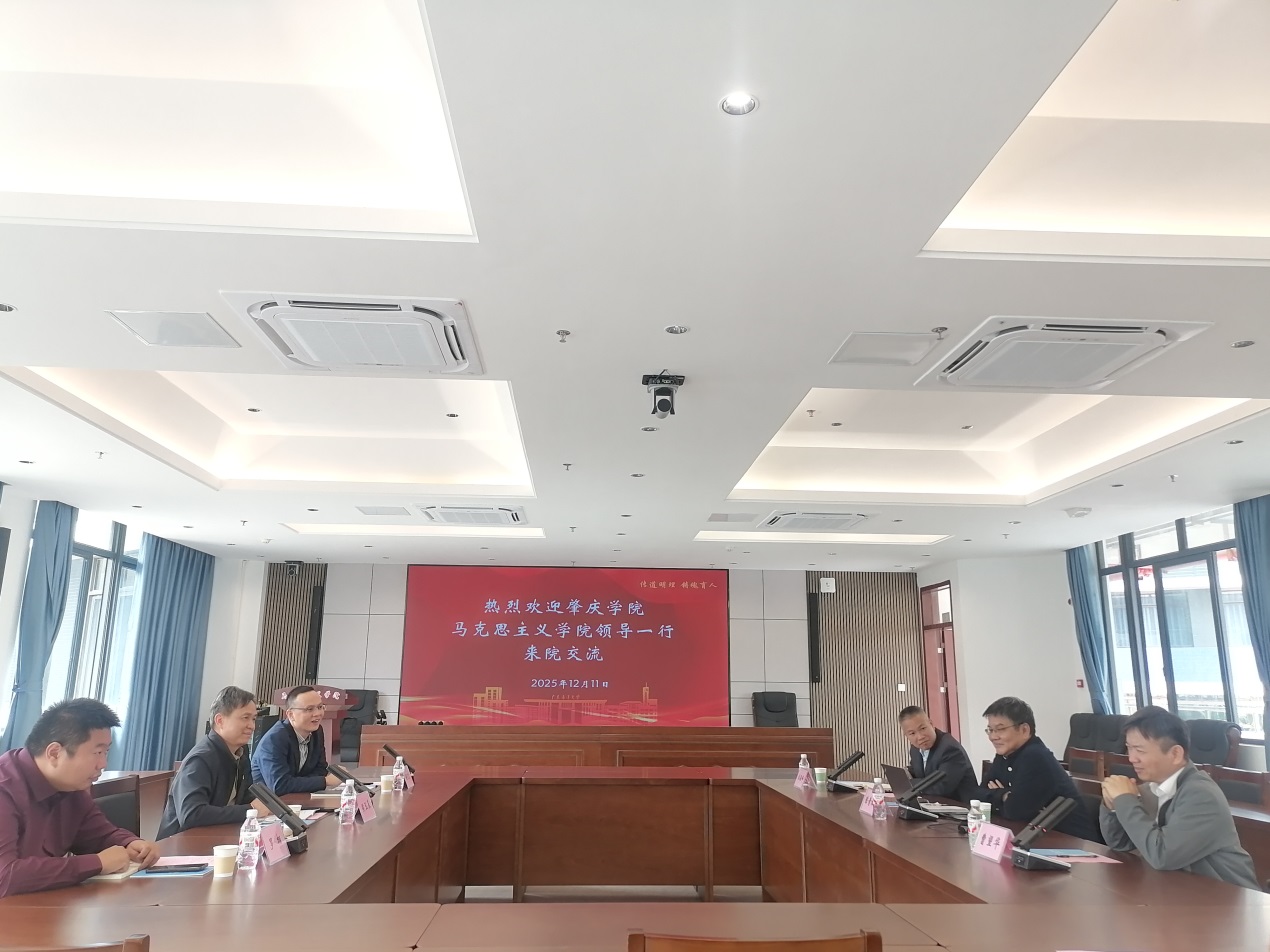 12月11日上午,肇庆学院马克思主义学院党委书记侯玉基等一行来我院开展调研交流。我院党委书记陈青松、院长曹望华、副书记林海峰参加了调研交流座谈会。陈青松书记主持了会议。